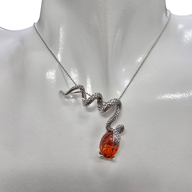 Oval-shaped cognac amber stone set in .925 sterling silver.