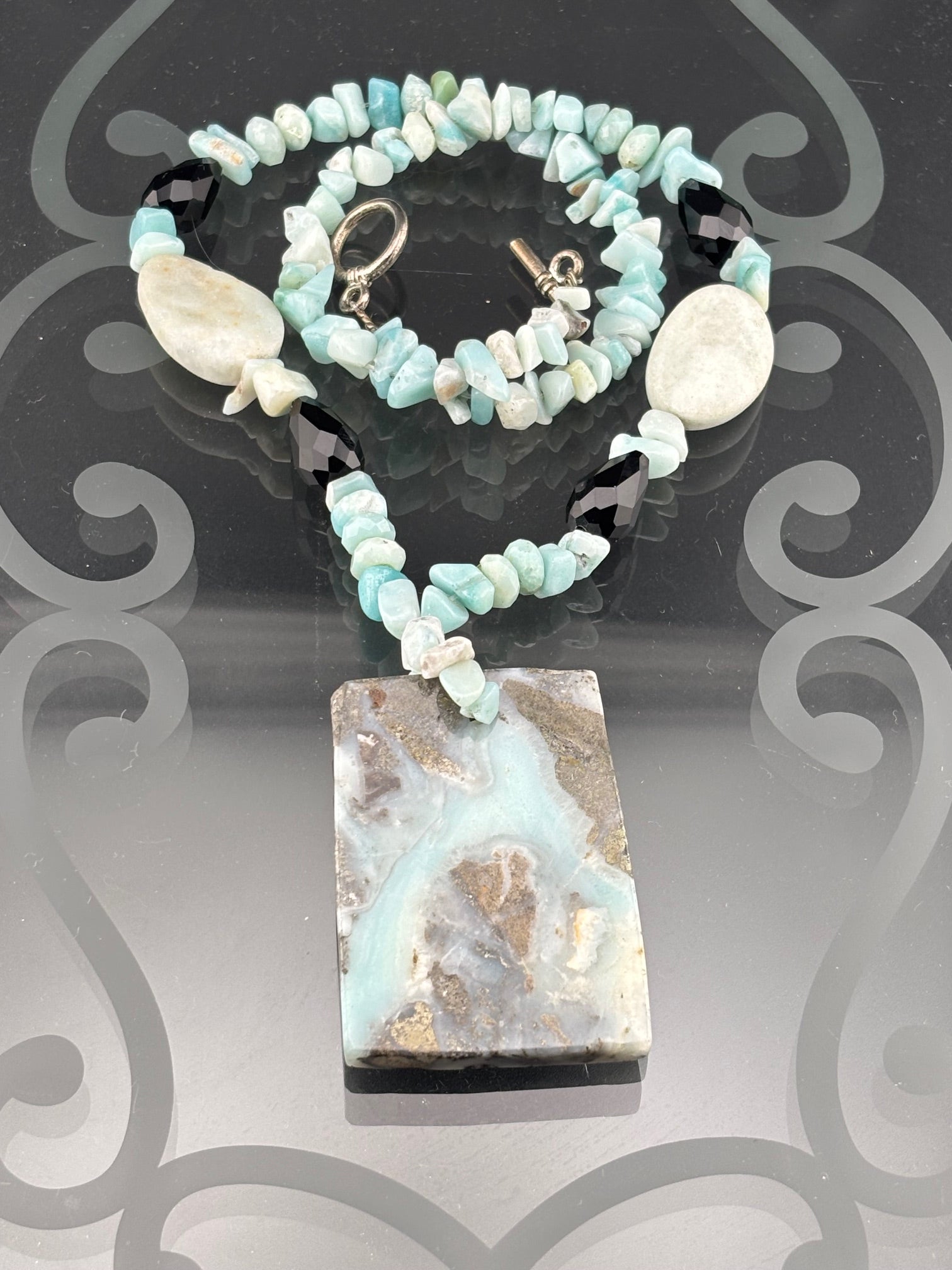 Green Gemstones Necklace with Toggle Clasp 48cm