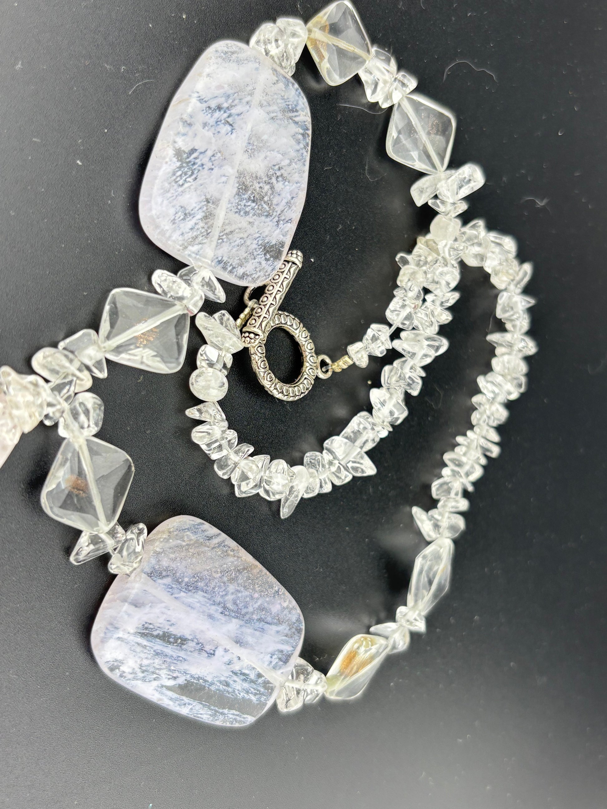 Slice of Natural Grey Agate on a string of natural stones with toggle clasp